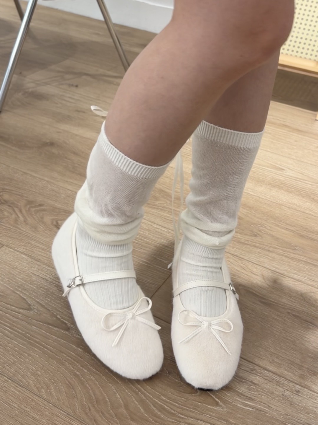 整雙都是毛絨絨的~鞋頭搭一個緞帶蝴蝶結